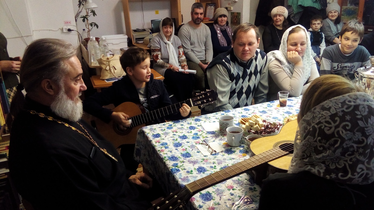 10 февраля после Божественной литургии в нашем храме состоялась творческая встреча прихода храма Богоявления с воскресной школой храмов Архистратига Михаила и Святых Царственных Страстотерпцев поселка Тургояк. Эта встреча была своеобразным знакомством с творческими людьми с тем, чтобы в дальнейшем проводить совместные мероприятия и, вообще, дружить храмами.