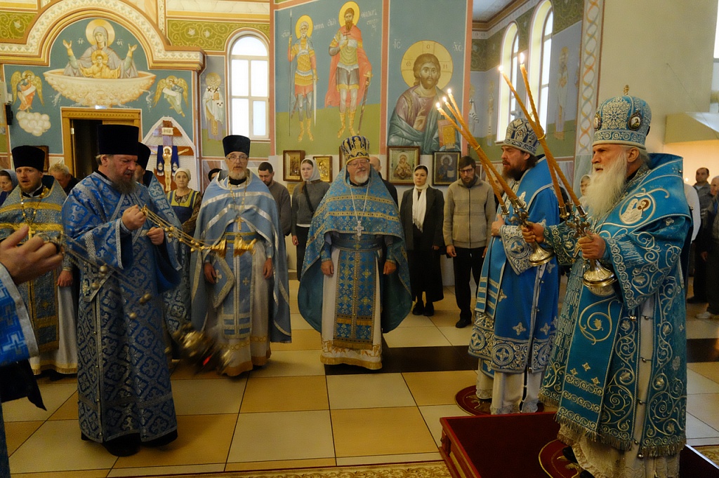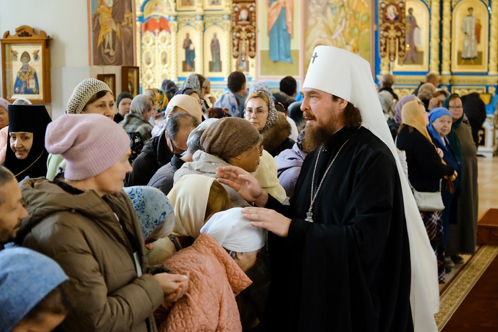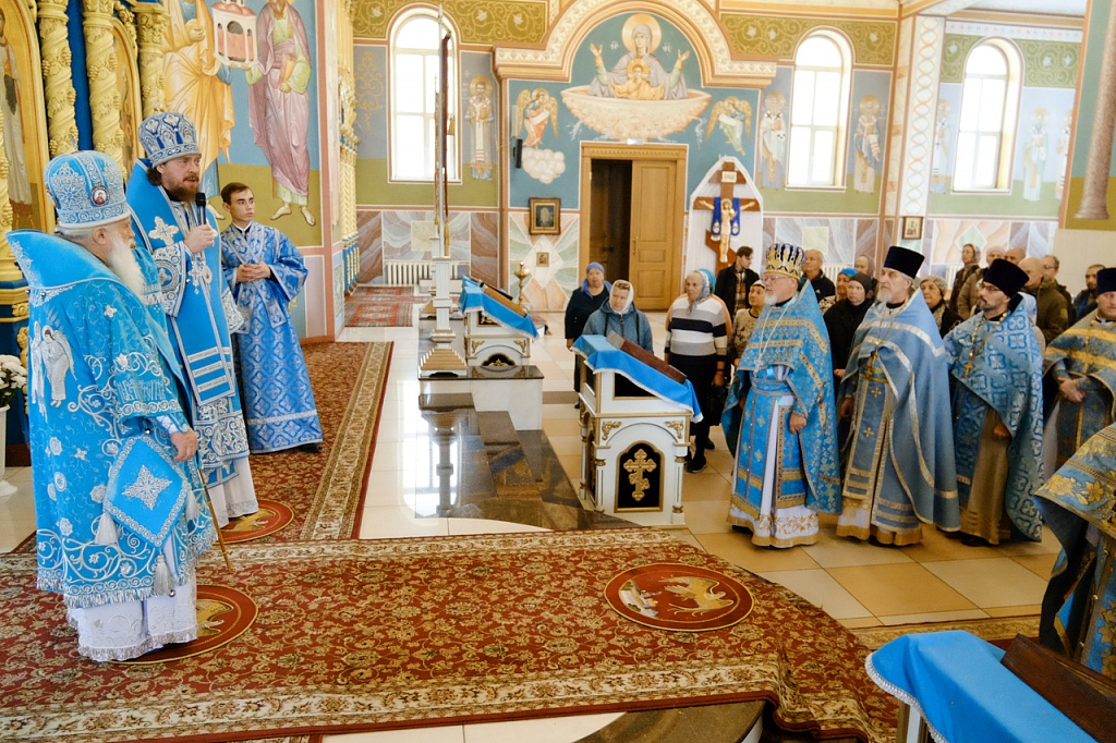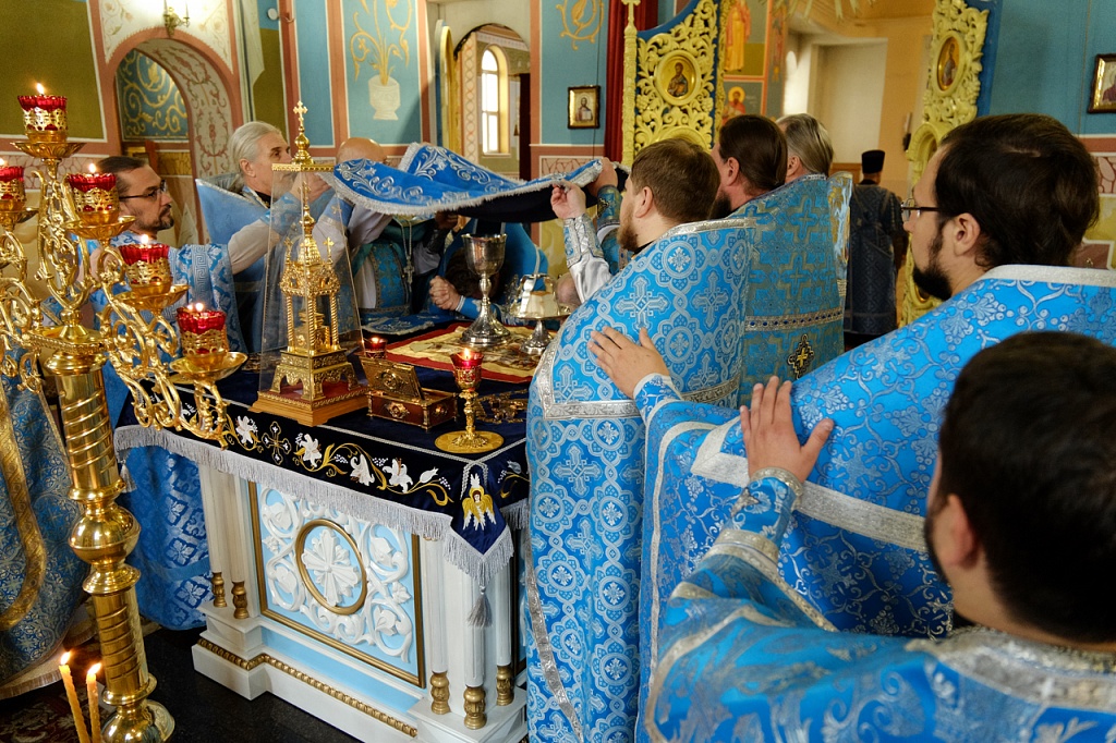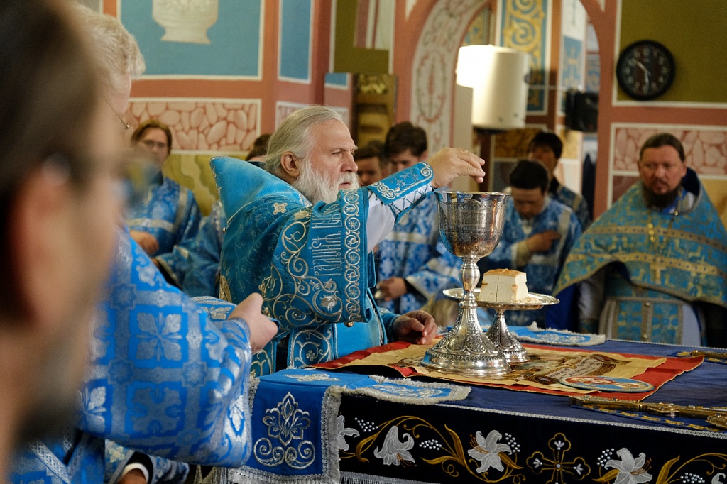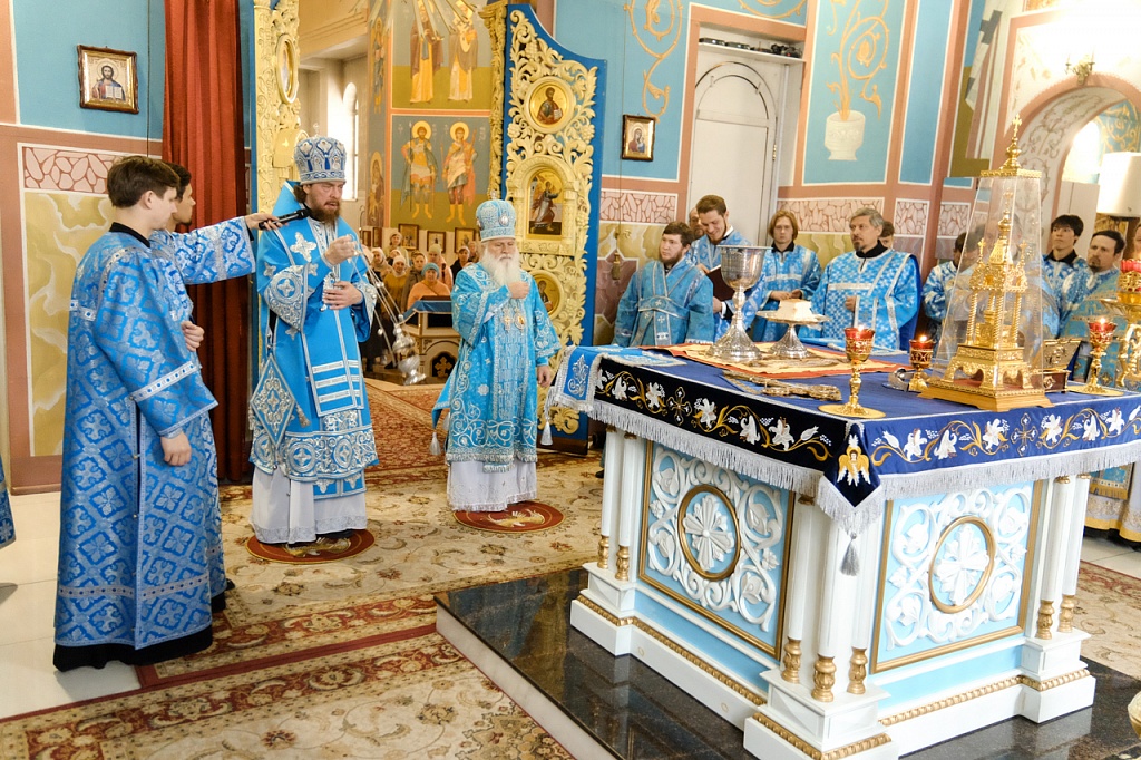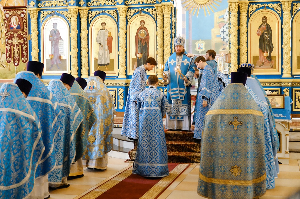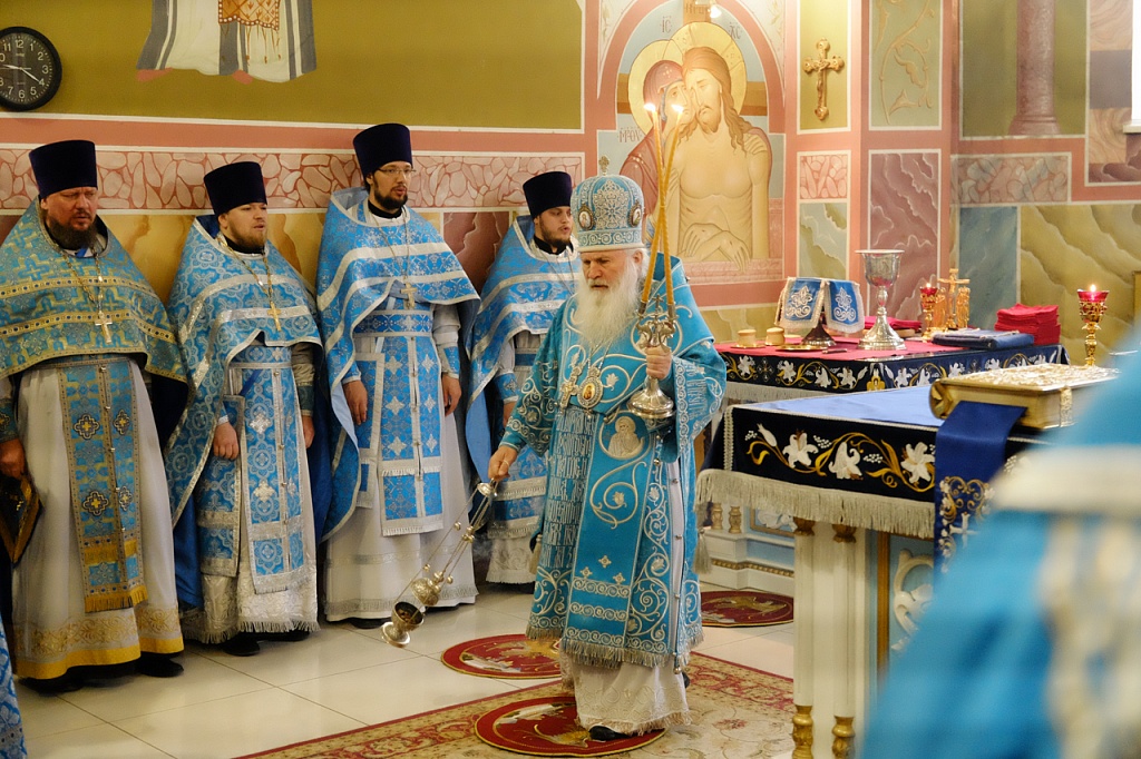 Архипастырям сослужил секретарь Челябинской епархии протоиерей Игорь Шестаков, настоятель храма протоиерей Игорь Рысенко и духовенство Миасса. Песнопения исполнил Архиерейский хор под управлением регента Марины Гоман. Богослужение состоялось в день, когда Русская Православная Церковь молитвенно вспоминает святителя Михаила, первого митрополита Киевского.