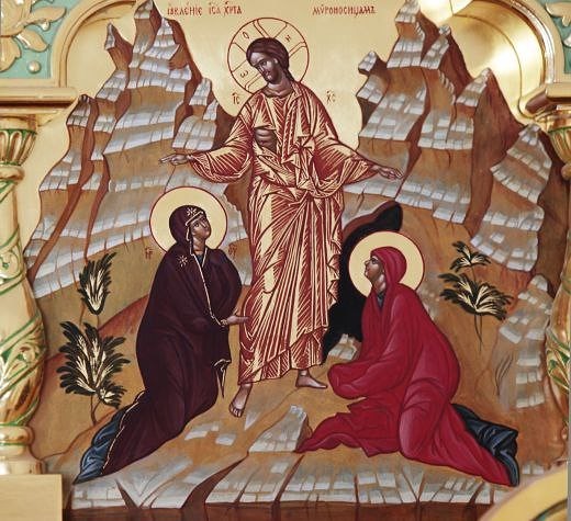 Вот женщины идут и думают, как мы туда попадём, кто нам этот камень отвалит, чтобы туда можно было войти? Но эти их тревоги оказались напрасными. Незадолго до их прихода отвалил этот камень Ангел, стража римская разбежалась в страхе от явления небесного вестника, а Ангел Божий, сидя на камне, поджидал спешащих ко гробу жен-мироносиц. Увидев их испуг и страх, он сказал им: «Не бойтесь, Тот, Кого вы ищете, Иисус Назарянин распятый – воскрес, нет Его здесь. Вот место, где Он лежал. Идите и скажите ученикам Его и Петру, что Он будет прежде вас в Галилее, Там вы Его увидите, как Он и сказал вам» (Евангелие от Марка, глава 16).