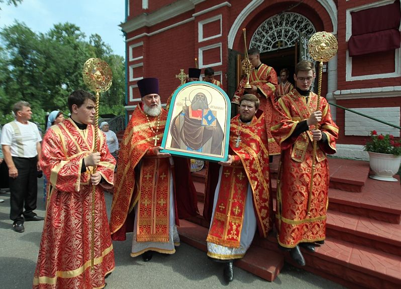 По окончании Божественной литургии верующие во главе с владыкой Никодимом совершили крестный ход вокруг храма с иконой прпмч.Ардалиона (Пономарева).